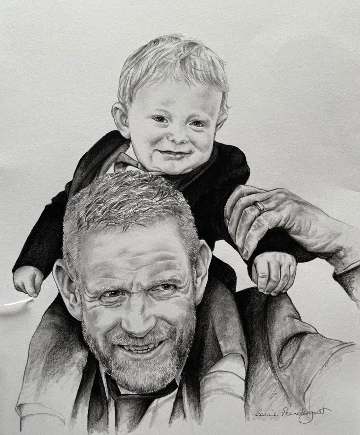 I work from photographs, so your portrait can be taken from a single photograph, if it is of sufficient quality, or alternatively, multiple photographs can be used to create the desired portrait.
